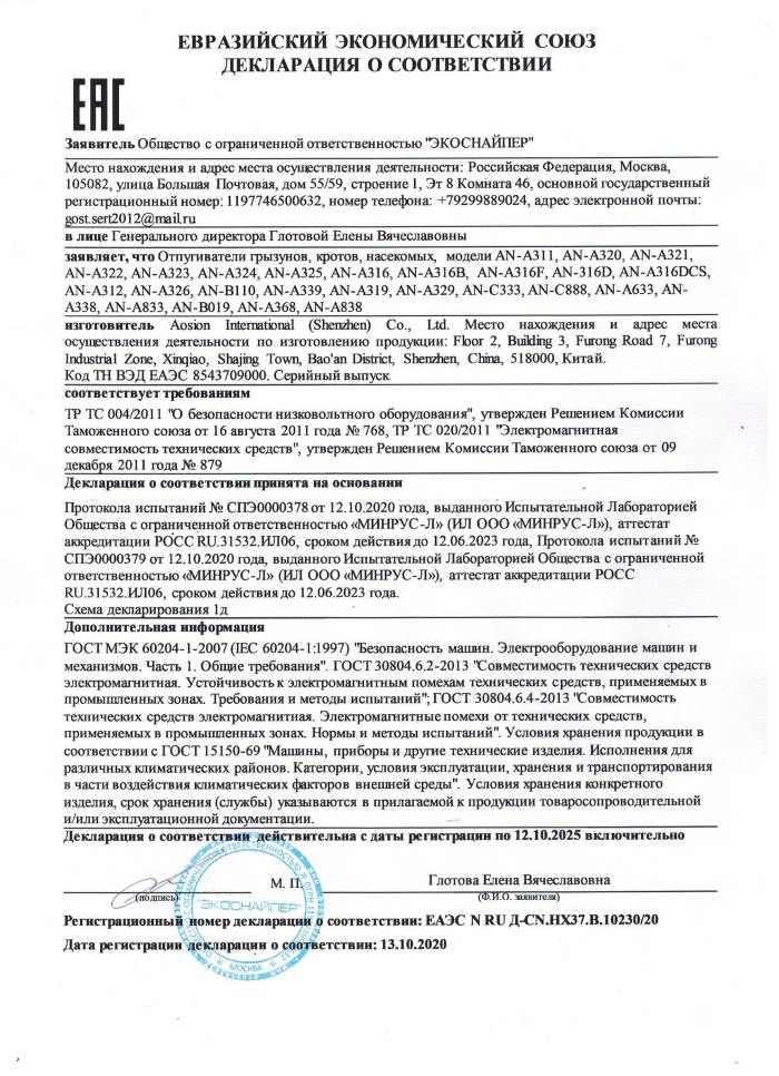 Приобрести электромагнитный отпугиватель тараканов «Экоснайпер AN-A322» по выгодной цене в Минусинске очень легко: для этого достаточно оформить заказ в нашем интернет-магазине.